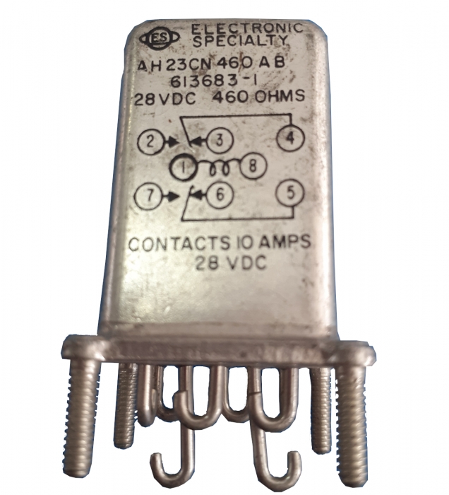 RELAY,ELECTRONIC SPECIALTY , AH23CN460AB , 613683-1 , 28 VDC ,460 OHMS , CONTACTS 10 AMPS 28 VDC